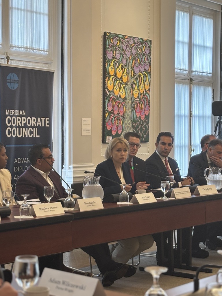 The transatlantic marketplace remains the most integrated in the world, with the European Union and the United States serving as each other’s largest trading partners and investors. Against a backdrop of shifting supply chains, industrial policy debates, and ongoing energy realignments, Meridian’s Corporate Council hosted a Global Business Briefing on September 25, 2025, with Her Excellency Jovita Neliupšienė, Ambassador of the European Union to the United States. The discussion explored the strategic dimensions of the EU-U.S. economic partnership and examined how both sides are working to sustain stability, competitiveness, and cooperation in global commerce.