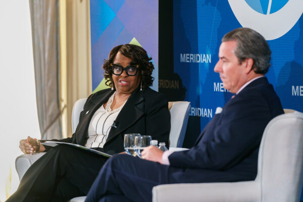 The Honorable Reta Jo Lewis, President and Chair of EXIM, sat down with Ambassador Stuart Holliday, CEO of Meridian, to share how EXIM has worked domestically and abroad for nearly 90 years to facilitate international cooperation through the export of U.S. goods and services.