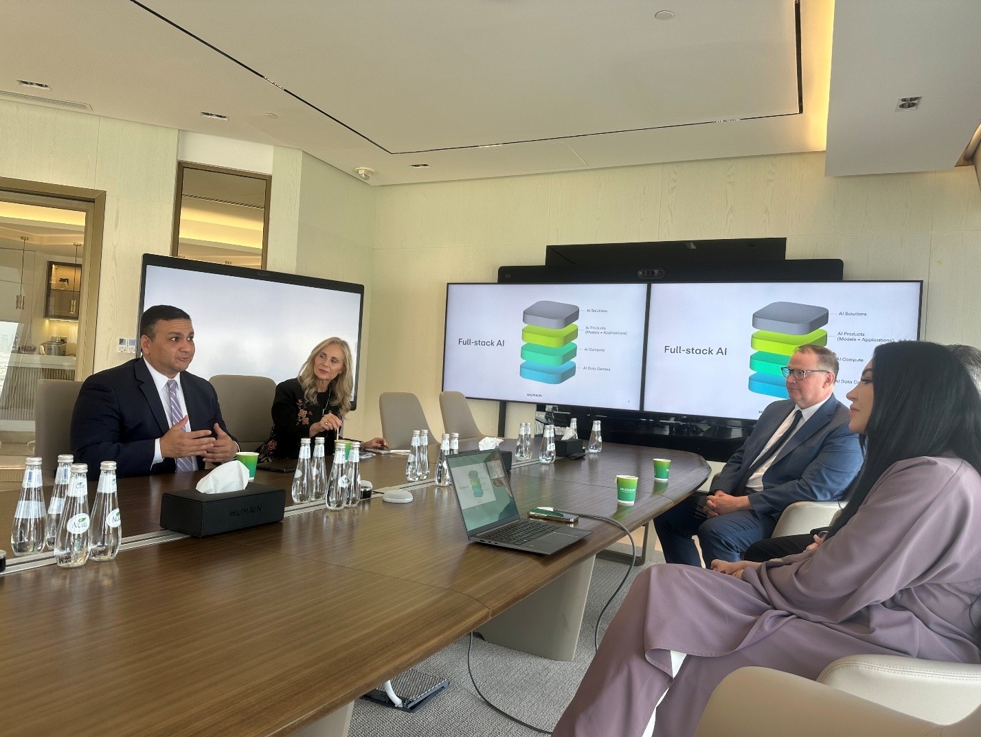 Meeting at HUMAIN with James Emerson, Chief Regulatory and Legal Officer, and Hana Nemec, Head of Communications and PR.