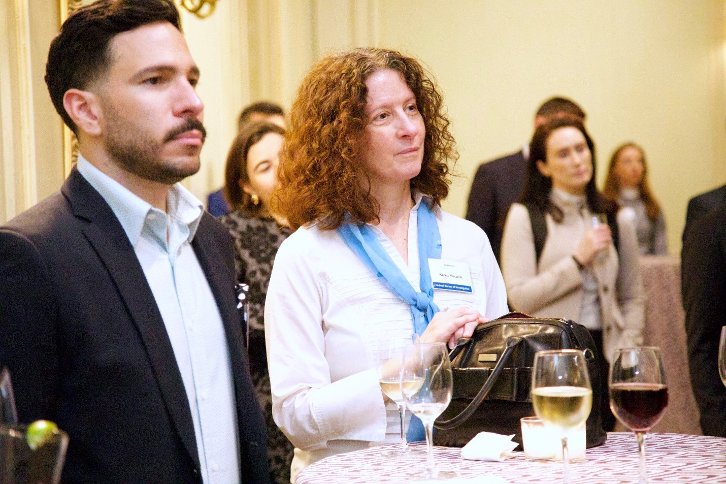 From left to right, Mr. Paul Fericelli (U.S. Environmental Protection Agency) and Ms. Karen Minatelli (FBI) at the Tech Labs Reception on October 14, 2025, at Meridian Internation Center in Washington, DC. Photo by Erik Cieslewicz.
