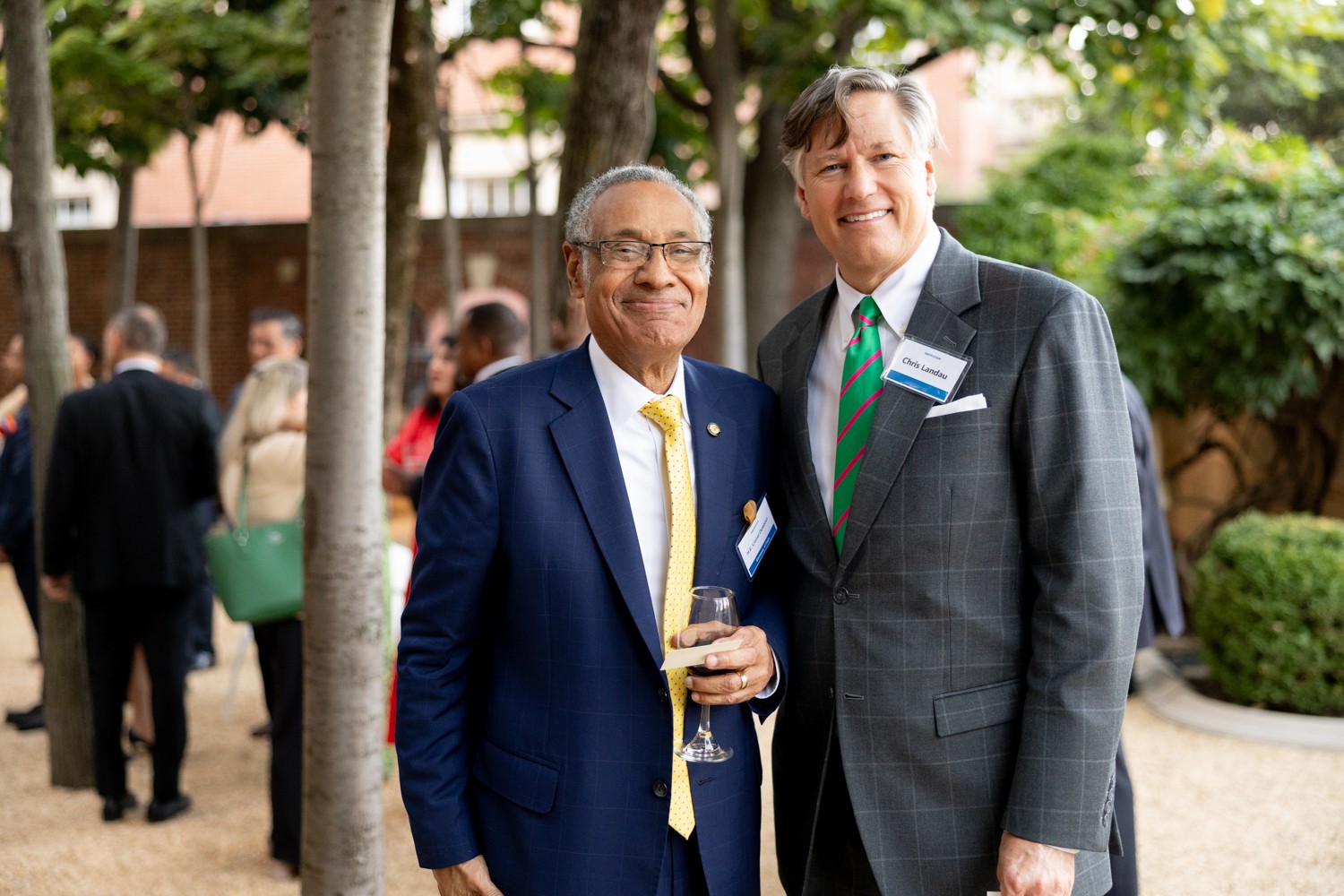 Deputy Secretary of State Chris Landau posing with H.E. Lionel Delatour, Ambassador of Haiti, in the Linden Grove during Welcome to Washington on September 9, 2025. Photo by Jess Latos.